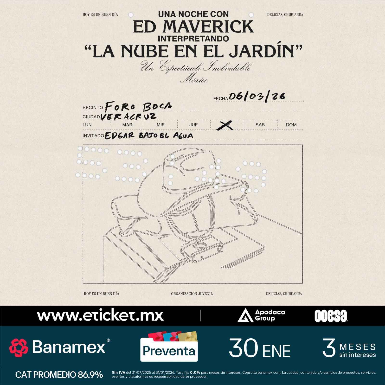 | Edgar Bajo el Agua | Concierto con Estelar | La Nube en el Jardín | Foro Boca | Blvd. Vicente Fox Quesada, Pescadores | Boca del Río | veracruz | México | |