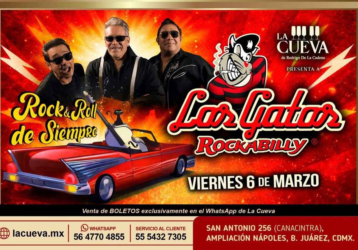 | Los Gatos Rockabilly | Concierto con Estelar | N/A | La Cueva de Rodrigo de la Cadena | Avenida San Antonio 256 | Ciudad de México | N/A | México | |