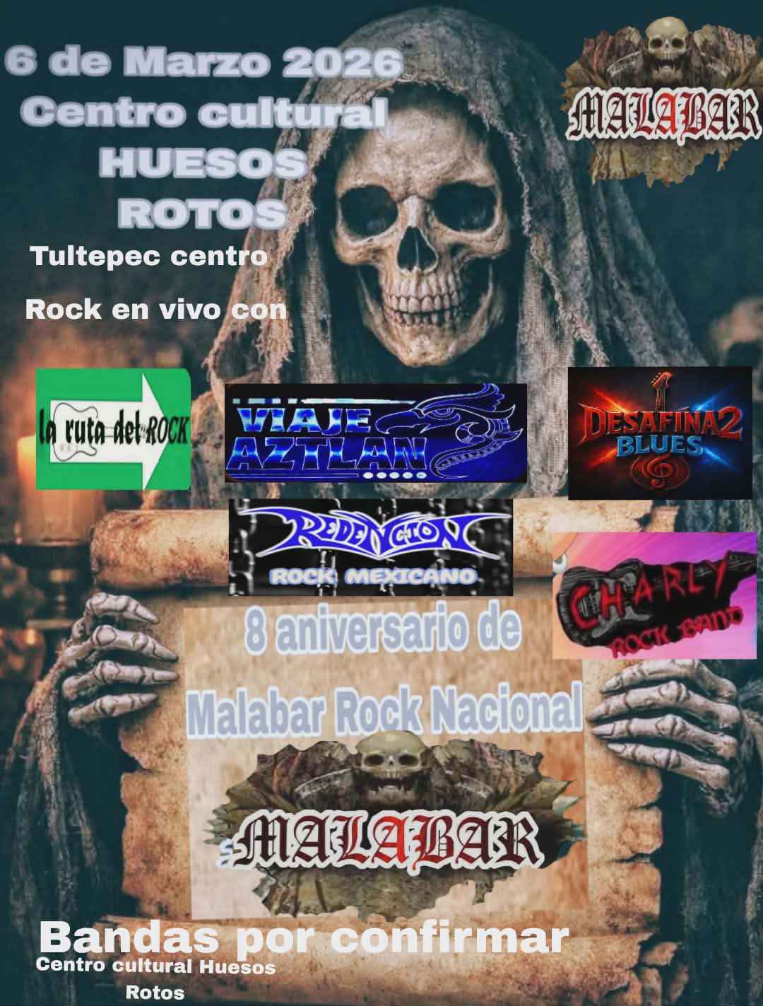 | Malabar | Concierto con Estelar | Rock de aniversario | Foro Cultural Huesos Rotos | Calle Mariano Escobedo 14, Centro | Tultepec | Edo. Mex. | México | |